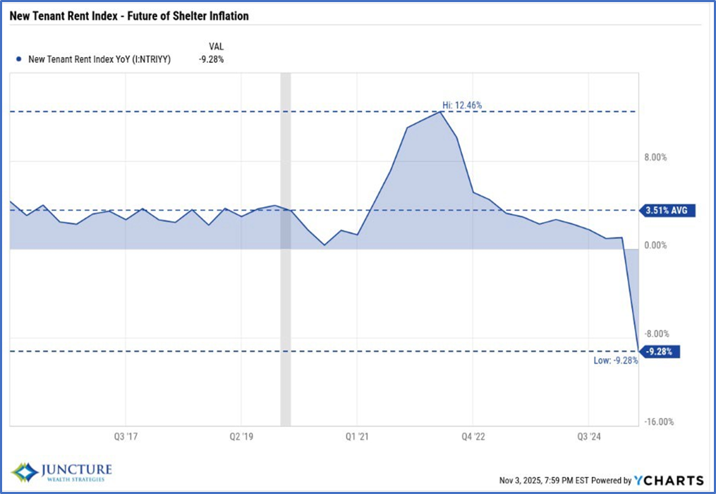 - Shelter inflation should continue to decline as new rents are declining year over year