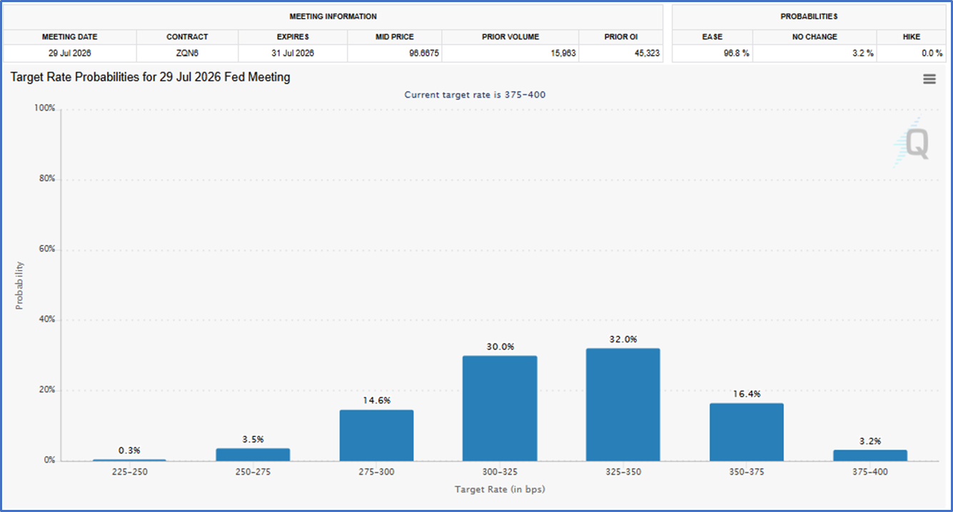 Interest rates have been cut twice this year as the Federal Reserve resumes its cutting cycle. Investors continue to optimistically price in additional 2 – 3 rate cuts by July 2026. Depending on the data regarding the labor market and economy, investors may be disappointed if the Fed communicates fewer cuts. This disappointment may cause some volatility in the equity and bond markets as both have already priced these cuts.
