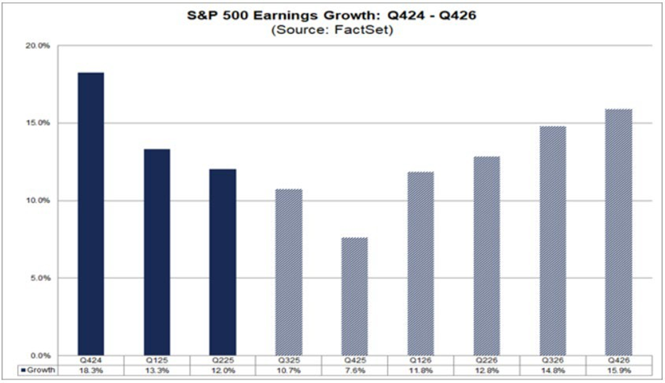 As discussed, lower labor costs have allowed corporations to increase profits over time. Below, we present Factset’s projections for quarterly earnings growth for the Standard & Poor’s 500 Index over the next few years. These forecasts will change based on new information; it still provides guidance as to the expected growth in earnings. Increasing earnings should provide equities with an opportunity for growth.